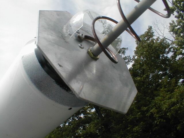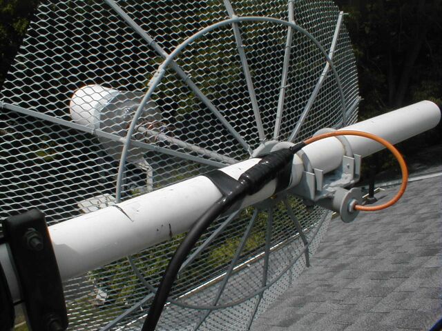 The RG-142 feedline runs through the feed support tube so as not to